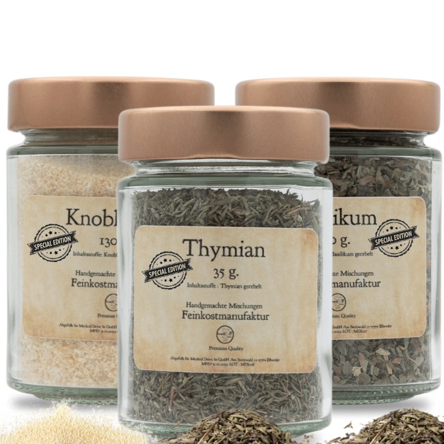 “Wächter der Gärten” Basilikum, Knoblauch,Thymian
