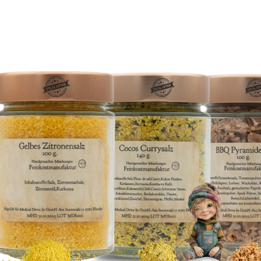 „Gestrandet im Geschmack“ CocosCurrysalz BBQsalz Zitronensalz