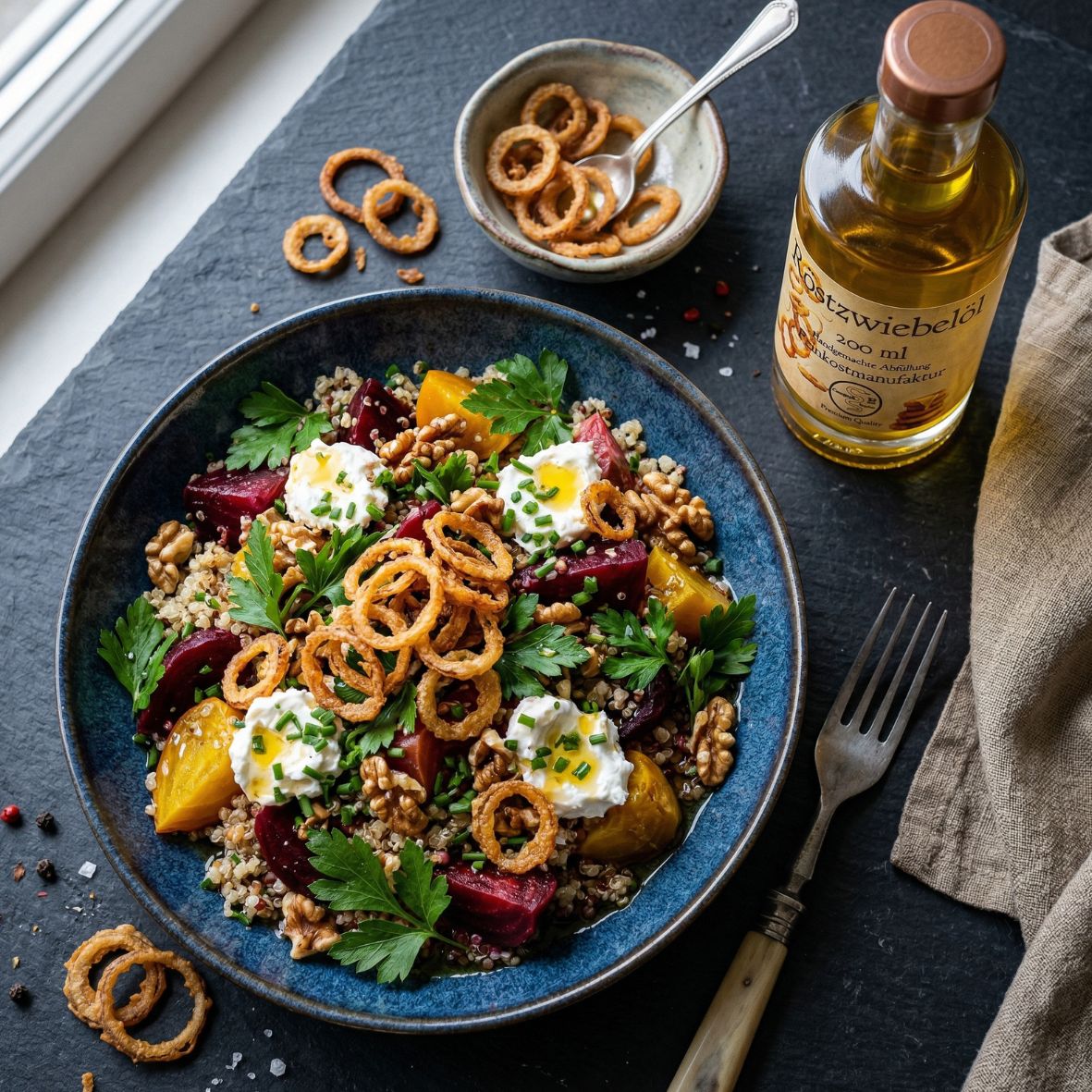 Unser Röstzwiebelöl fängt das komplexe Aroma gerösteter Zwiebeln ein, ohne dass du selbst am Herd stehen musst. Durch die schonende Verbindung der Zwiebelaromen mit hochwertigem Öl bleibt der typisch süßlich-herzhafte Charakter voll erhalten. Es wurde entwickelt, um Speisen eine sofortige Geschmacksdichte zu verleihen, die normalerweise nur durch langes Schmoren oder Braten entsteht.